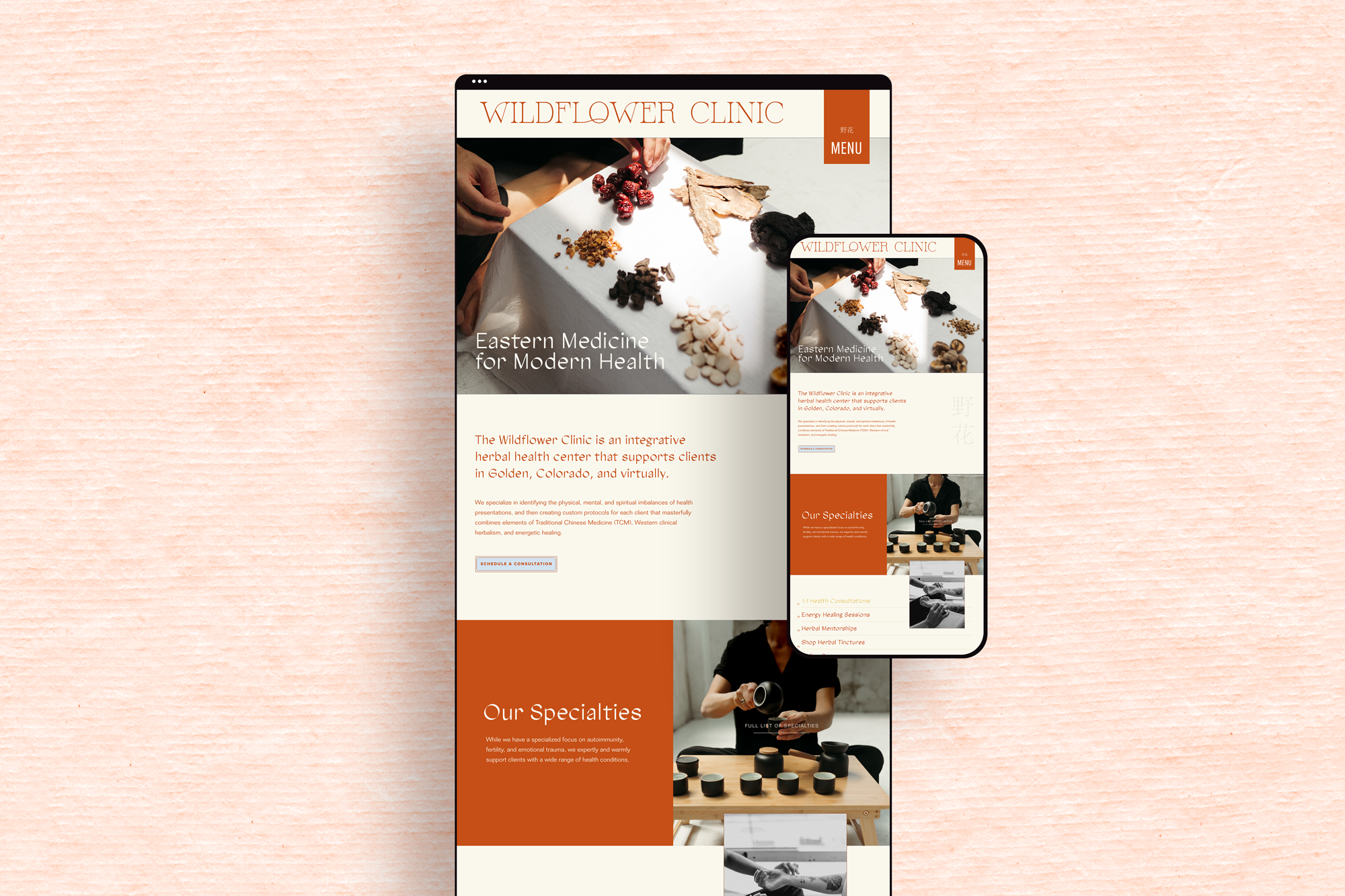 The Wildflower Clinic is an acupuncture and integrative Chinese medicine practice based in Golden, Colorado, offering holistic care with a focus on whole-body healing and reproductive wellness. I was brought into the project by Jess at Still Life Studio as the lead developer, tasked with transforming her design direction into a warm, welcoming, and strategically built Squarespace site.